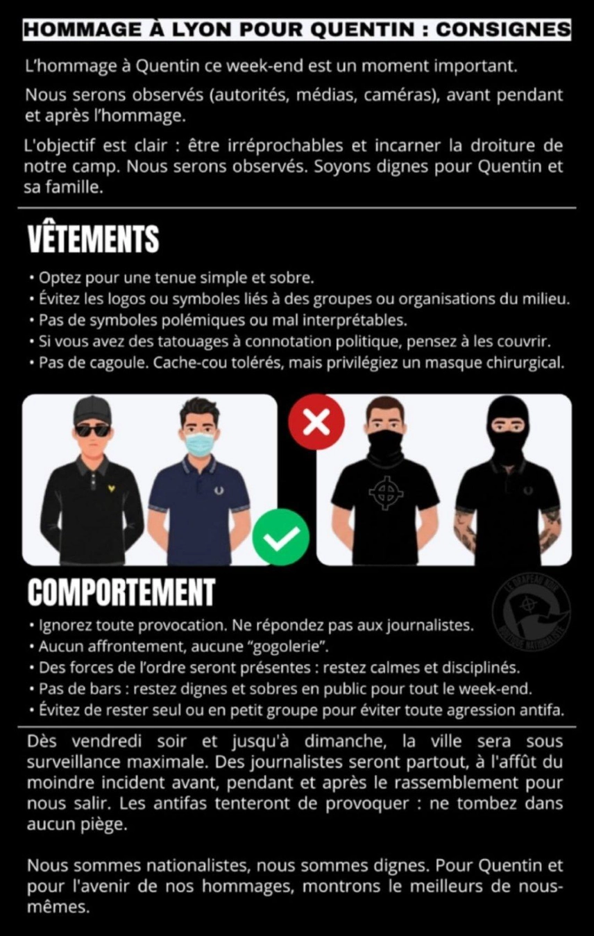 De plus, la manifestation lyonnaise s’est caractérisée par une esthétique apolitique. Afin de ne pas « faire le jeu » des médias, l’ultra-Droite a capitulé culturellement et il n’y avait ni drapeaux ni banderoles.